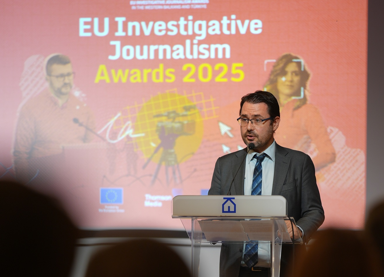 Manuel Munteanu, šef za informisanje, komunikaciju i medije Delegacije EU u Srbiji, istakao je značaj hrabrosti istraživačkih novinara za nastanak kvalitetnih priča.